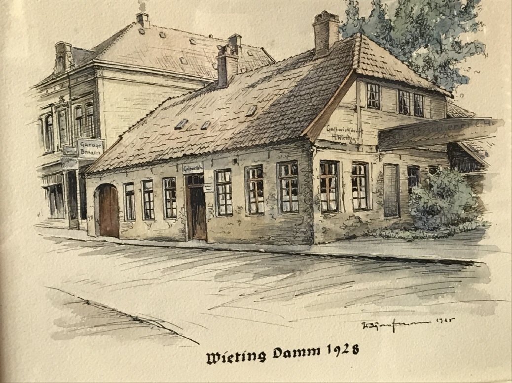 Einige Generationen und Wirte später - im Jahre 1893 - erwarb dann Johann Heinrich Wieting das Anwesen, welches er 1927 an seinen Sohn Georg weitergab, der soeben geheiratet hatte. 1934 baute das Ehepaar Wieting ein neues Haus, diesmal mit 2 Obergeschossen und einigen Gästezimmern. Das dicht an der Straße stehende alte Gebäude wurde über Nacht abgerissen und den staunenden Oldenburgern wurde gerade zu Beginn des Oldenburger Kramermarktes das „Gasthaus Wieting“ präsentiert. Alte Nachbarn und Osternburger erinnern sich noch heute an das rauschende Eröffnungsfest. In den letzten Kriegstagen 1945 fiel Georg Wieting bei einem Bombenangriff auf den Oldenburger Bahnhof. Seine Witwe Erna Wieting führte den Betrieb mit viel Mut und Schaffensfreude weiter. Doch schon bald folgte die Beschlagnahme des Hauses durch die englischen Besatzer, welche das Haus bis 1958 als Sitz der YMCA nutzten.